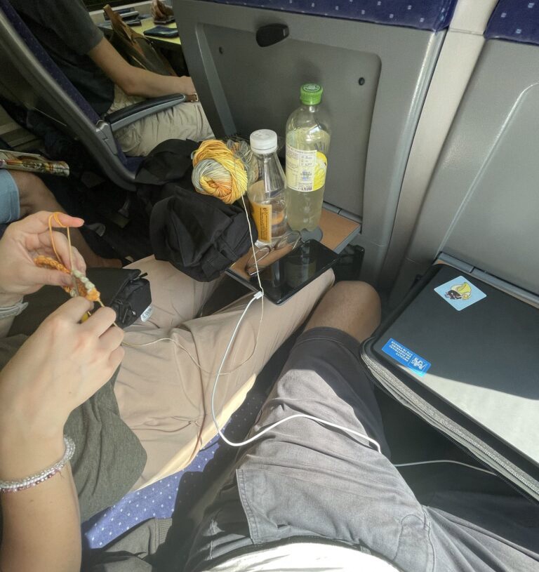 Jinak během cesty si Julča krátí čas háčkováním a já soubojem s tímto blogem. Kolem druhé hodiny dorážíme na Stuttgartské nádraží a zatím úspěšně pokračujeme po naší nově naplánované trase.