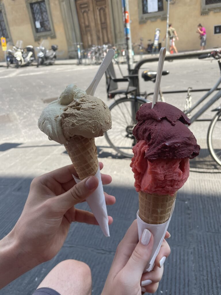 Po prodírání mezi turisty jsme chtěli nechat odpočinout nohy a vypravili se do zahrad Boboli u paláce Pitti. Za studentskou cenu 2 eura za osobu jsme se dostali dovnitř a našli jsme si plácek ve stínu a chvilku si oddychli. Při cestě zpět do centra jsme museli skočit na zmrzlinu a zatím to byla ta nejlepší a největší porce.