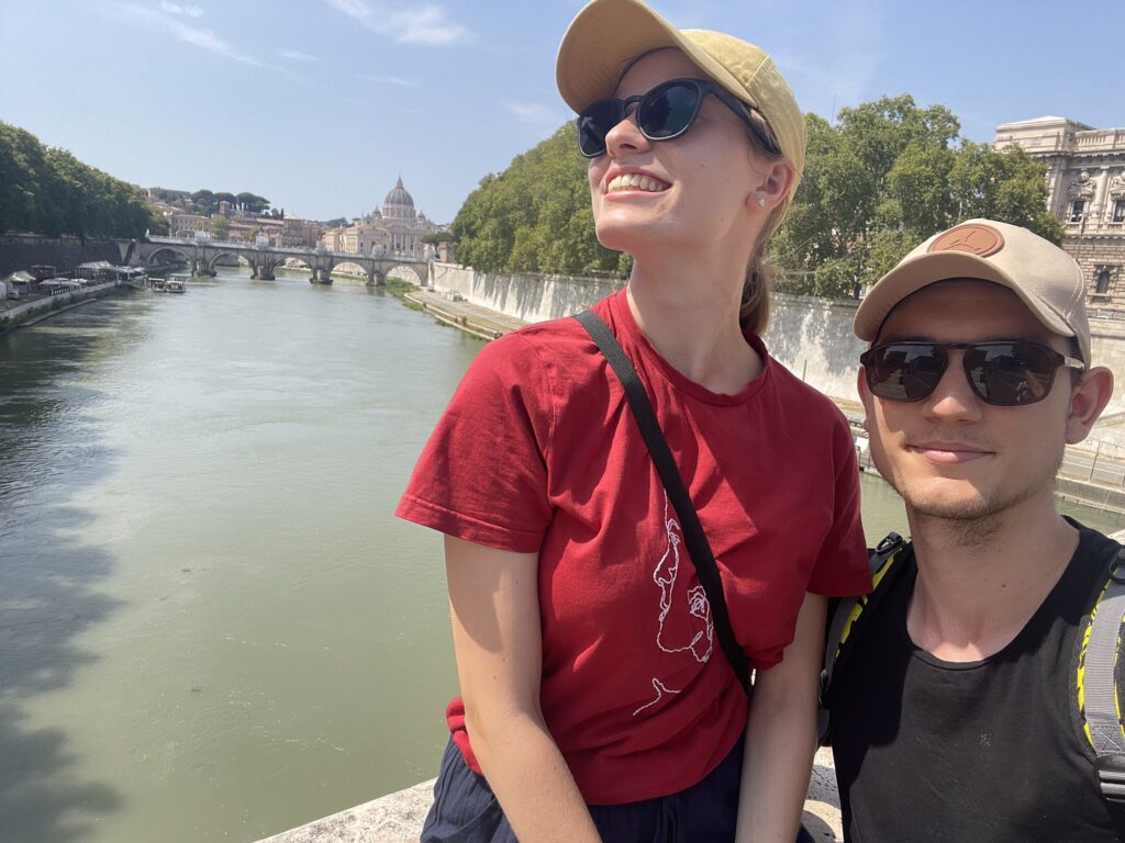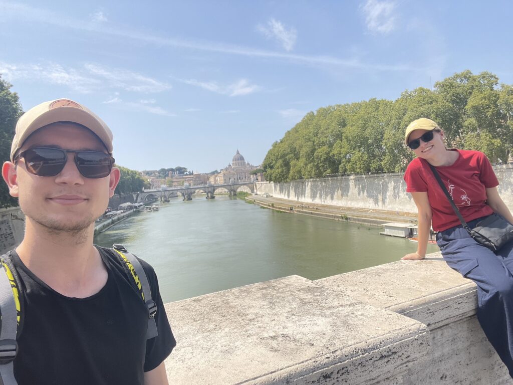 Z Vatikánu jsme pokračovali na Andělský hrad a stejnojmenný most. Hrad byl přístupný s lístkem a celý most byl zahalený v lešení. Tak jsme aspoň spočinuli v přilehlém parku ve troše stínu. Pak jsme přešli přes jiný most a fotografií s Vatikánem jsme nadobro zakončili jeho návštěvu.