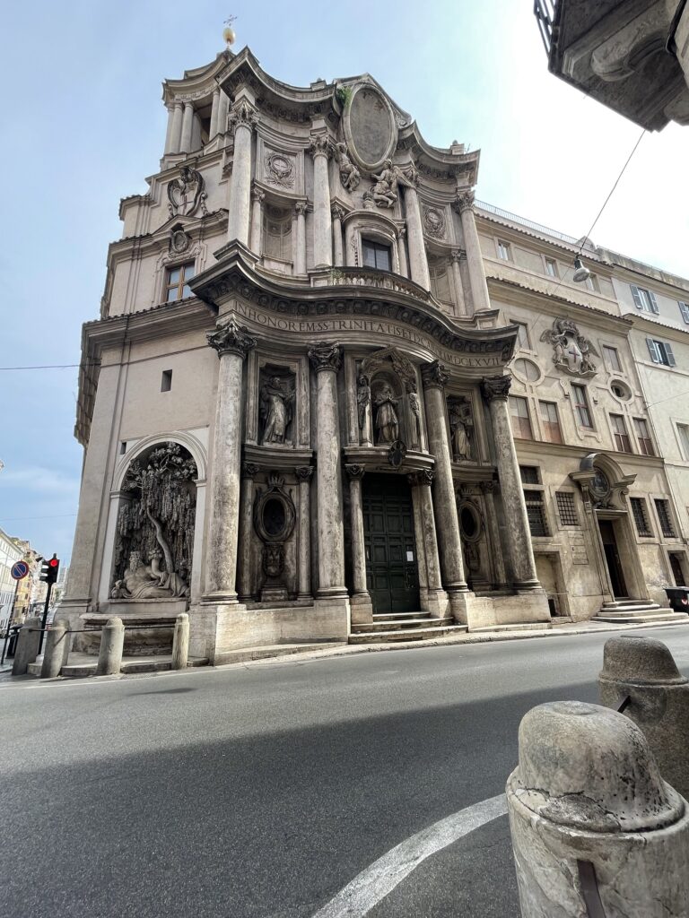 Poslední zastávkou byla křižovatka u čtyř fontán nebo také křížení ulic Via delle Quattro Fontane a Via del Quirinale. Hlavní urbanistické osy od bran Porta Pia a Porta del Popolo se v tomto místě kříží. Významnost tohoto místa byla zaznamenána zkosením rohů okolních domů a vytesání čtyř fontán u každého z nich. Navíc se zde nachází kostel San Carlo alle Quattro Fontane výrazný svými vlnícími se barokními římsami.