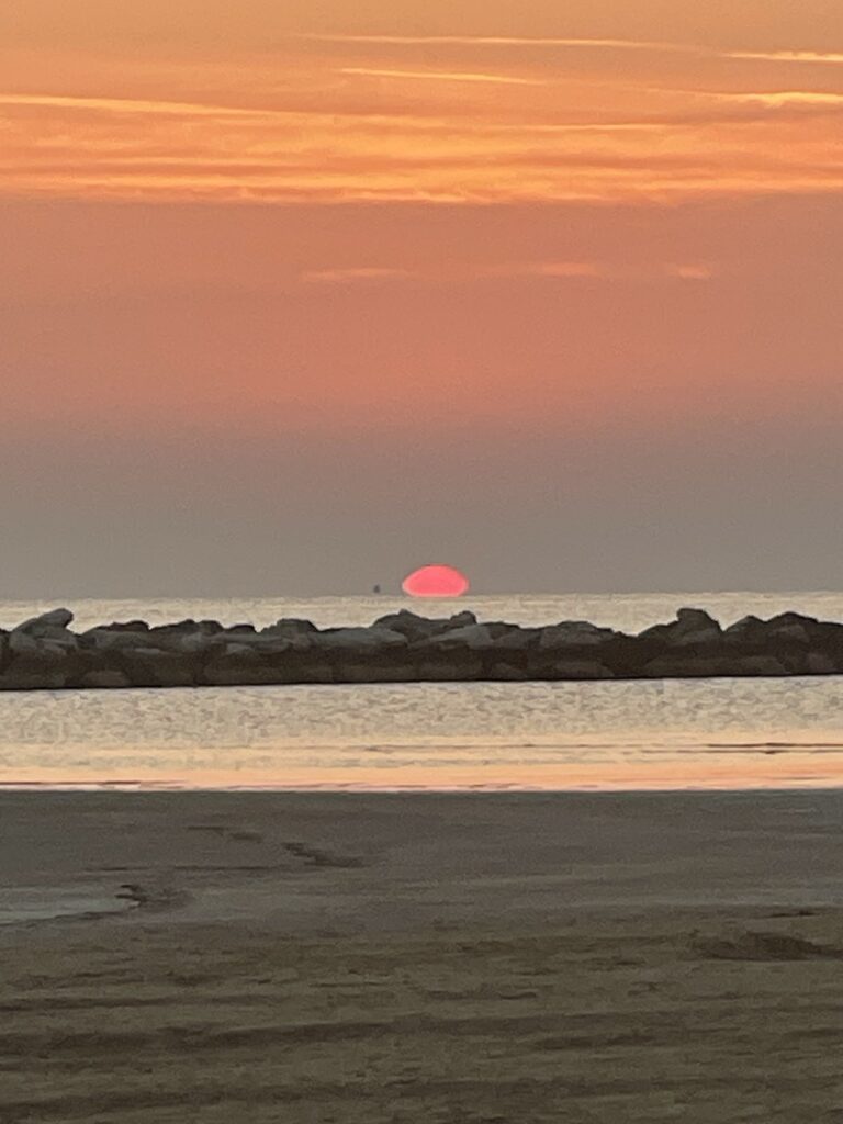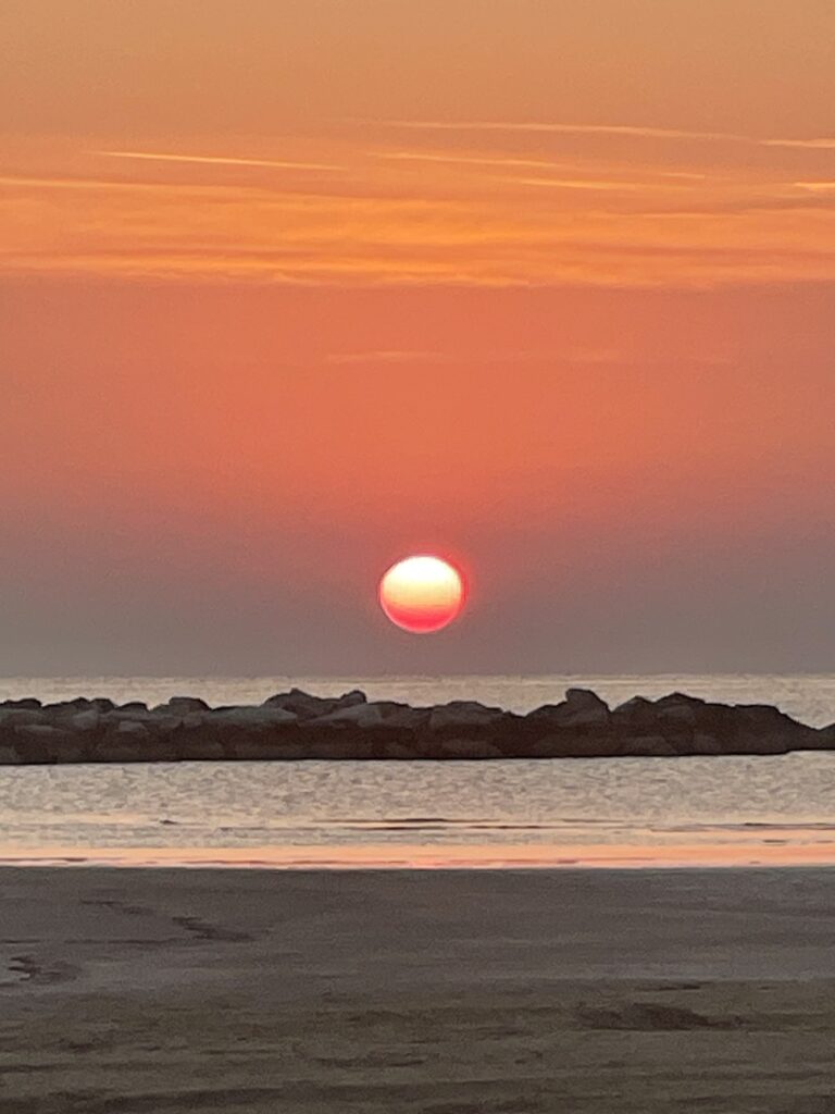 Před šestou ráno jsme vyrazili na východ slunce (jsme na pobřeží směřovaném k východu, takže slunce vychází přímo nad horizontem moře) a přibližně kolem půl sedmé se objevilo.